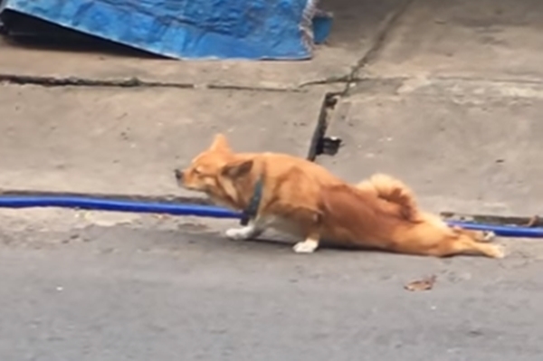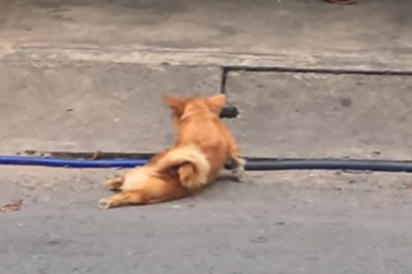 배고픈 유기견이 음식을 구걸하려고 다친 척 연기하는 모습이 포착됐다.