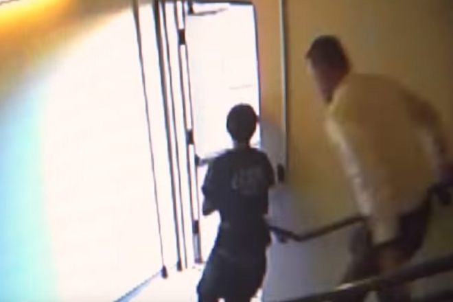 영상에는 두 수감자가 자리에서 벌떡 일어나 문으로 뛰어가는 모습이 담겼다. 갑작스럽게 시작한 도주극에 주변 사람들 모두 넋을 잃고 허둥지둥하고 있을 때, 판사가 벌떡 일어나 둘을 쫓아가기 시작한다.