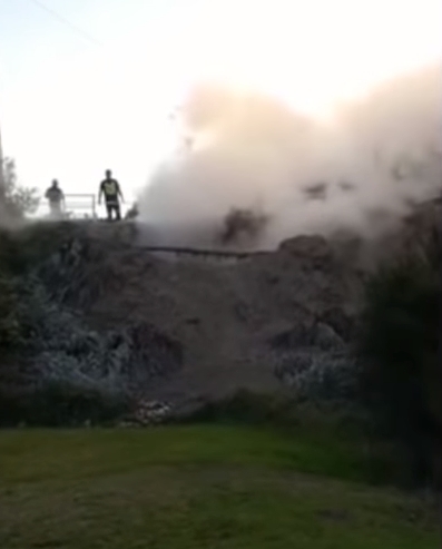 보도에 따르면 이날 오전 2시께 심한 진동에 잠에서 깬 게이더는 아래층으로 내려갔다가 마당에 증기와 진흙을 내뿜는 간헐천이 생긴 것을 발견했다.
