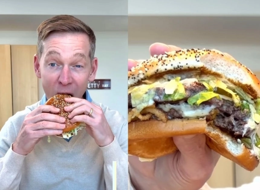 맥도날드 CEO의 햄버거 시식 모습. 엑스 갈무리