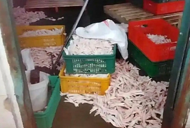 보도에 따르면 쓰촨성 청두의 한 닭발 가공업체 작업장 바닥에는 오·폐수가 고여 있었고, 악취가 진동했다. 닭발은 바닥에 아무렇게나 쌓여 있었으며, 빗자루와 삽 같은 청소 도구가 닭발 위에 올려진 채 작업이 이어졌다. 작업자들이 바닥에 떨어진 닭발을 주워 가공 통에 넣는 모습도 포착됐다.
