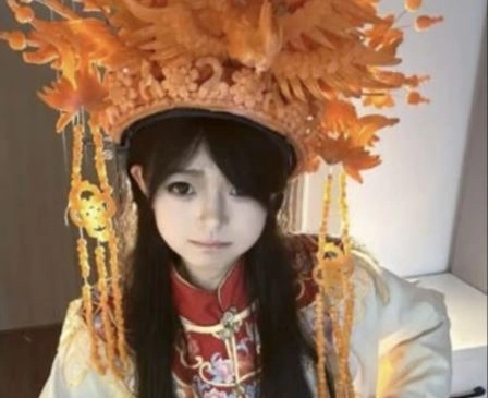 천친이 당근으로 직접 깎아 만든 머리 장식을 착용한 모습. 웨이보