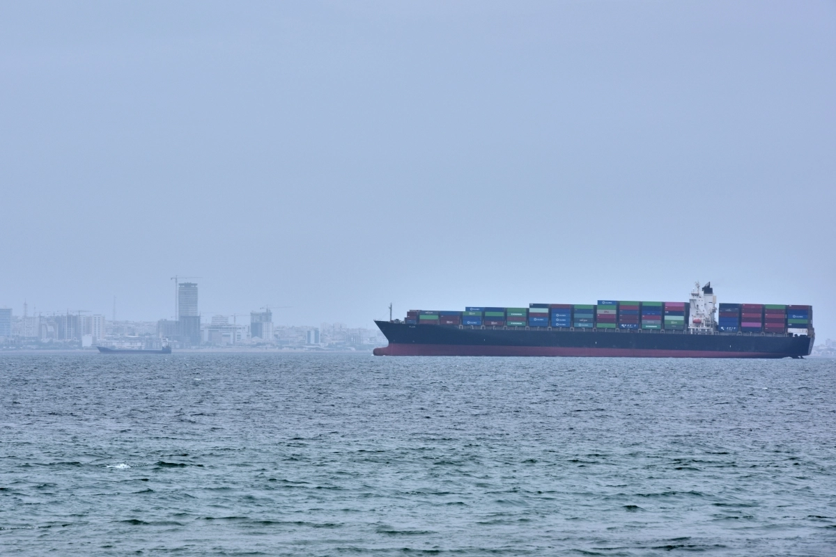 18일(현지시간) 호르무즈 해협에 정박 중인 컨테이너선의 모습. AP 연합뉴스