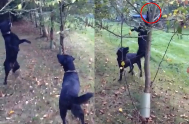 지난 1일 유튜브에 게시된 영상을 보면, 평소 좋아하던 사과가 나무에 걸려있는 것을 발견한 검은 레브라도 리트리버 두 마리가 흥분한 듯 짖어댄다. 사과를 쳐다보며 짖어대기만 하던 개들은 곧 점프를 해가며 사과 따기에 도전한다. 그러나 역부족이라 느낀 개들은 급기야 서로를 올라타 점프해보려고 하지만 이 또한 쉽지 않다.