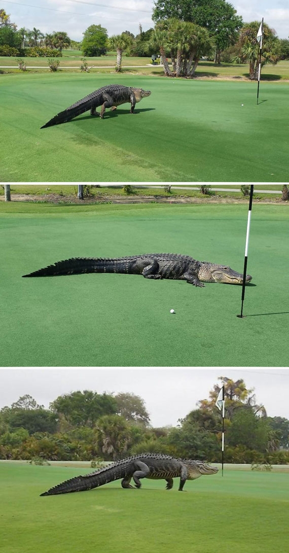 골프 라운딩을 즐기는 중 거대한 악어가 나타난다면?