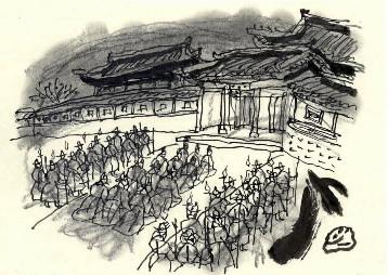 군사들은 횃불을 들고 섰고,대신들 역시 촛불을 밝히고 앉아 있었으므로 궁정 앞 뜰은 대낮처럼 밝아졌다.타오르는 불빛이 멀리까지 번져 나가 화광이 충천하였다.멀리서 이 불빛을 본 입직승지들은 놀라서 허둥지둥 달려왔다.합문밖에 이르러서야 이들은 궁 안에 심상치 않은 돌발 사태가 일어난 것을 알게 되었다.