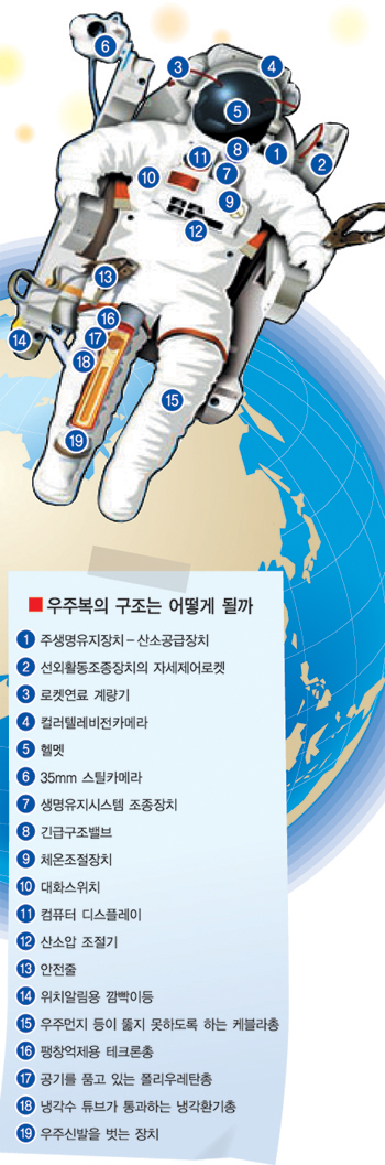 현대 항공기 가구제작 원리와 비슷 100㎏우주복 무중력상태선 17㎏불과
