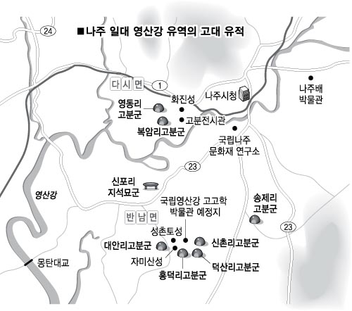 전남 나주시 다시면 영동리에서 백제는 물론 신라와도 교섭이 있었음을 보여주는 대형고분군이 발굴됨에 따라 영산강 유역이 고대문화의 보고로 다시 한번 이목을 집중시키고 있다.