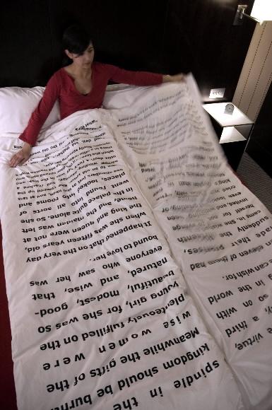 포르투갈의 신진 디자이너 티에고 다 폰세카는 동화 ‘잠자는 숲 속의 공주’를 침대보에 새겼다. 모두 3장으로 된 이불 위의 동화를 읽다 보면 어렸을 적 어머니가 들려 주던 옛날 이야기가 떠오르면서 스르르 잠에 빠져들 것만 같다.