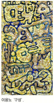 무엇보다 이응노(‘구성’), 김창열(‘회귀 SH7010’)의 작품을 만날 수 있어 반갑다. 글씨의 획을 연상시키는 오수환의 추상화,‘숲’‘집’ 등의 단어를 설치물로 직접 표현한 정승운, 문자를 기본 단위로 삼아 북송시대 산수화를 모방해 그린 유승호, 현대사회의 아이콘과 민화의 문자도를 결합한 손동현의 작품 등이 소개됐다.