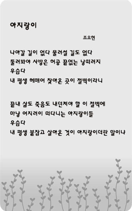 그렇지만 스님이 시를 발표한다, 신문에 난다는 것이 어쩐지 부끄러운 일인 것 같아 시를 거의 쓰지 않았다. 그런데 이태 전부터 죽음이 가까워졌다는 생각이 들어 삶을 되돌아본다는 의미에서 시를 쓰게 됐다고 한다.“춘천불교방송 창립에 관여하고 장학재단도 설립했으며, 만해 선양회와 만해마을도 만들었습니다.” 이런 일들을 지금 돌이켜보니 한낱 ‘아지랑이’를 붙들기 위해 발버둥친 것처럼 느껴졌다는 것이다.
