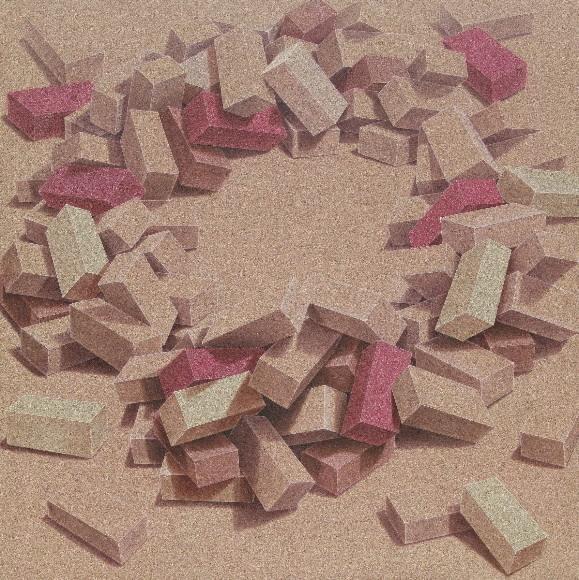 작가의 새로운 변모를 발견할 수 있는 대목은 또 있다. 벽돌 무더기를 화면 전체에 빼곡히 채운 이전의 방식과 달리, 벽돌을 흐트러뜨리거나 군데군데 여백을 남기는 등의 조형적 시도가 돋보인다.(02)720-1020.
