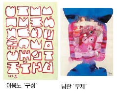 물론 같은 자산을 토대로 했으나 이응노는 군집성이 두드러져 울림을 중시하는 작품을 낳았고, 남관은 개별성이 두드러져 캐릭터를 중시하는 작품을 낳았다. 큰 차이라고 하면 아주 큰 차이다. 허나 오늘 관람자의 입장에서는 볼수록 서로 조화롭기만 하다.