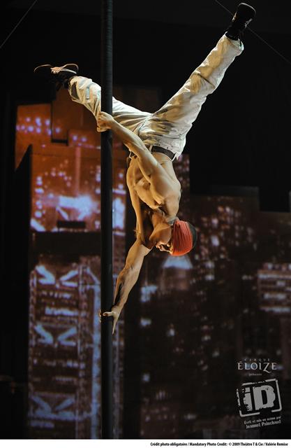 캐나다 아트서커스 ‘아이디’ 가운데 한 장면.캐나다 아트서커스팀 ‘서크 엘루아즈’의 신작 ‘아이디(ID)’가 지난 7일 송도국제신도시 내 인천세계도시축전장 빅톱시어터에서 개막했다. ‘서크 엘루아즈’는 ‘레인’(2006년),‘네비아’(2007년)등의 내한공연으로 국내 관객에게 친숙한 단체다. ‘아이디’는 회사 창립자인 제노 팽쇼가 직접 총연출을 맡은 작품으로, 인천세계도시축전 개막에 맞춰 전세계에서 첫선을 보였다.