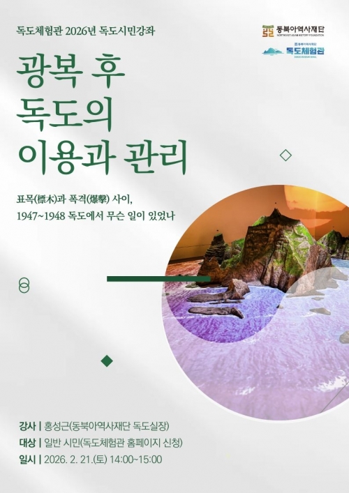 첫 강좌인 21일에는 홍성근 재단 독도실장이 ‘광복 후 독도의 이용과 관리: 표목(標木)과 폭격(爆擊) 사이, 1947∼1948 독도에서 무슨 일이 있었나’를 주제로 강연한다. 광복 직후의 혼란기에 독도를 지키기 위해 진행된 학술조사, 1948년의 비극적인 독도 폭격 사건, 에도시대 일본의 독도 인식 등 다양한 이야기를 들려준다.