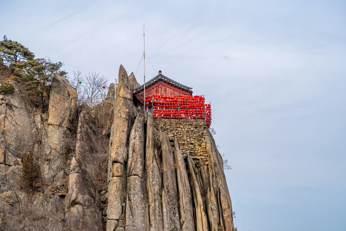 연주대 정상의 응진전은 석가모니불과 16나한을 모신 전각으로, 강한 화기를 다스리는 상징적 공간으로도 해석된다.