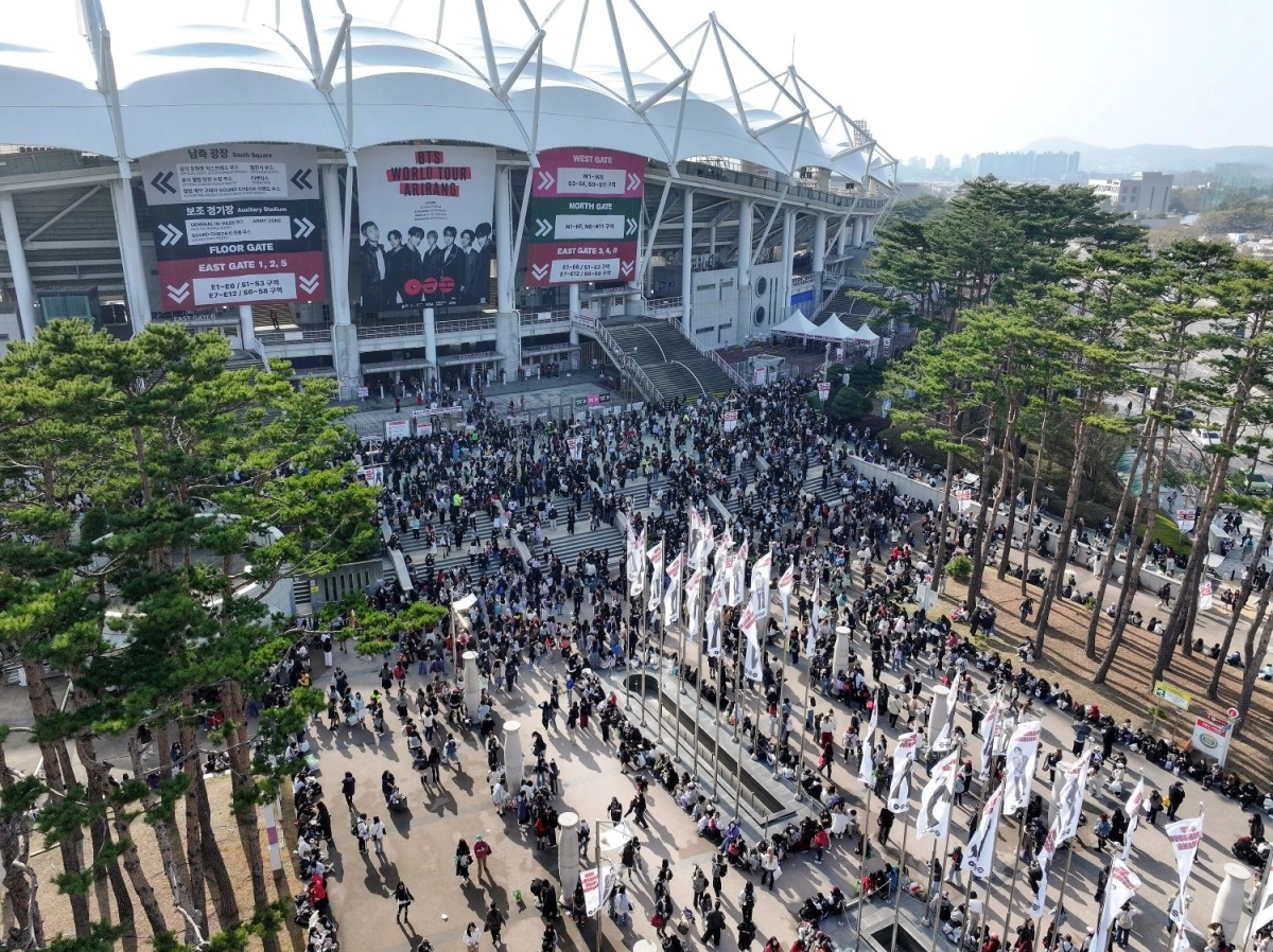 세계적인 그룹 방탄소년단(BTS) 월드투어 ‘아리랑 인 고양’ 공연이 약 13만 명의 관람객을 끌어모으며 성황리에 마무리됐다. 대규모 인파 속에서도 단 한 건의 안전사고 없이 공연이 종료되면서 고양종합운동장의 대형 행사 운영 역량이 다시 한번 입증됐다는 평가다.