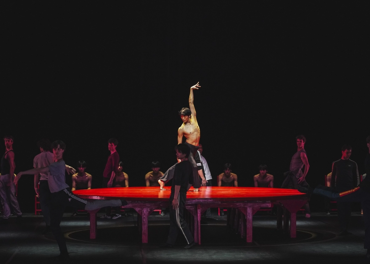 커다란 붉은색 원형 테이블 위에 홀로 서 있는 무용수. 작곡가 모리스 라벨(1875~1937)의 ‘볼레로’(1928)가 흘러나오면서 무용수가 조금씩 리듬을 탄다. 스페인풍 볼레로 리듬 위에 플루트, 바순, 오보에, 트롬본, 팀파니, 베이스드럼, 탐탐이 추가되고 무용수들도 서넛씩 테이블 주변에 모여 동작을 반복한다. 점층적으로 고조되는 에너지가 객석까지 빨아들이며 집단적 몰입을 완성하면 무용수는 끝내 쓰러진다.