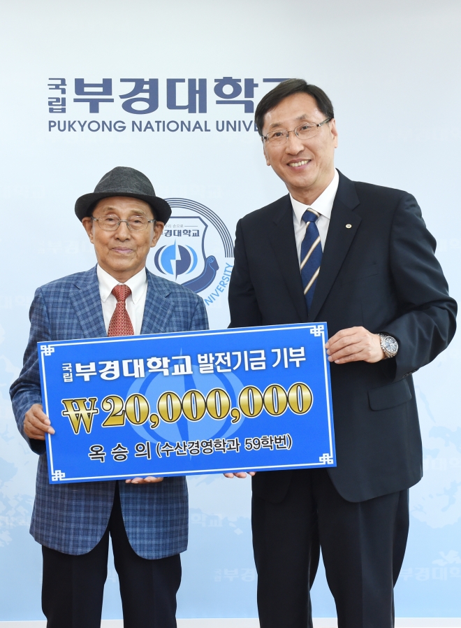 옥씨는 지난 19일 오전 부경대 대학본부 3층 회의실에서 열린 발전기금 전달식에서 장학금으로 써 달라며 2000만원을 전달했다.