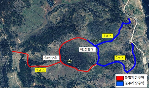 도는 지난해 오름가꾸기 자문위원회 회의를 열고 자연휴식년제 1년 연장을 결정했고, 아직 완전히 식생이 회복되지 않았다고 판단해 최근 자연휴식년제를 2022년 7월31일까지 1년 추가로 연장하기로 결정했다.다만 식생복원이 어느정도 이뤄진 것으로 판단된 정상 탐방로 1~2코스에 한해 오는 8월15일부터 개방하기로 했다.