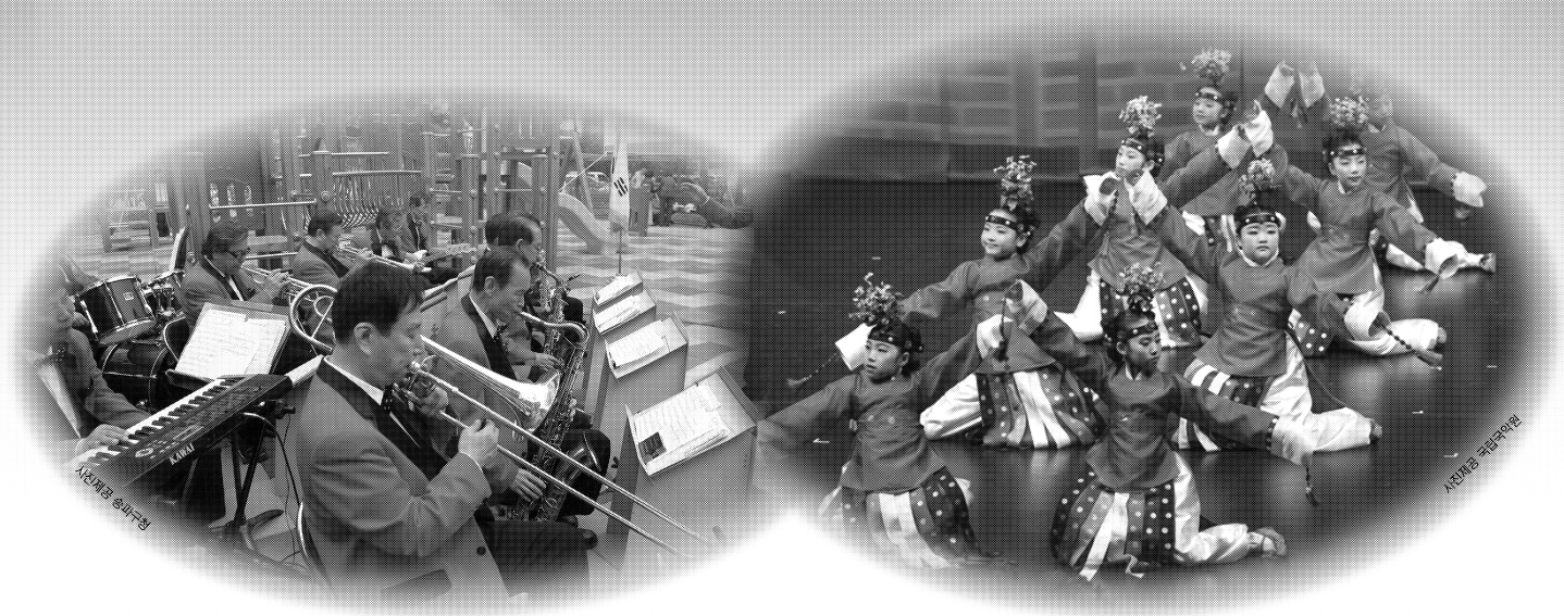 한쪽은 나이 지긋한 할아버지들, 다른 한쪽은 아직 초등학교도 졸업하지 못한 귀여운 여자아이들. 한쪽은 서양악기를 연주하고, 다른 한쪽은 궁중무용을 선사한다. 한쪽은 평균 연령대가 70대, 다른 한쪽은 10세. 한쪽은 무대 경력이 무려 50여년, 다른 한쪽은 길어야 1년 조금 넘는 기간. 한쪽의 최연소 단원과 다른 한쪽의 최고령(?) 단원의 나이 사이에는 강산이 다섯번이 바뀔 세월이 존재한다. 전자는 최고령 공연단이라고 내세워도 웬만해선 딴죽걸기 힘들어보이는 ‘송파실버악단’, 후자는 국내 유일의 어린이 정재 무용단 ‘화동정재예술단’이다. 화동정재예술단의 아이들이 송파실버악단 어르신의 나이가 될 때까지 수십년 공연을 한다 해도 만날 일이 없어보일 정도로 두 공연단체는 양극의 끝에 서 있다. 정반대의 양극단으로 뻗어가기 위해서는 한 점에서 시작해야 하는 법. 이 두 공연단의 시작점은 ‘무대’이다. 초롱초롱한 눈망울의 열살짜리 무용수도, 이 무용수만 한 손자가 있을 법한 트럼본 연주자도 무대에서 느끼는 감정은 같다. 설렘, 떨림, 흥분, 그리고 감동.