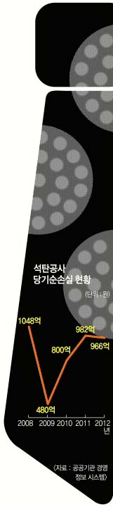 그렇다면 2014년 현재 석탄공사는 과연 방만한 경영 행태를 얼마나 탈피했을까. 2008년 말 기준으로 1조 3760억원이었던 부채는 2013년 상반기에 1조 5144억원을 넘어섰다. 1000억원 가까운 당기순손실이 해마다 발생했기 때문이다. 국회 산업통상자원위원회가 지난해 펴낸 예비심사검토보고서는 “부채가 계속 증가하고 자산보다 부채의 증가 규모가 커서 자본잠식 상태가 점점 악화될 것으로 전망된다”고 밝혔다.