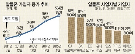 2011년 7월 제도가 도입된 알뜰폰은 지난해 11월 전체 이동통신시장 점유율 10%를 돌파했다. 업계에서는 올해가 알뜰폰 시장 성장의 분수령이 될 것으로 보고 있다. 지난해 알뜰폰 사업자들의 영업이익 적자는 596억원에 달한다. 지난해에 비해 적자폭이 38% 줄었지만 중소사업자 대부분은 재무구조가 열악하다. 연간 300억원에 달하는 전파사용료를 감면받아 왔지만 올 9월에는 이마저 끝난다. 저가 요금제를 통한 양적 성장뿐 아니라 질적 성장에 주력해야 하는 이유다.