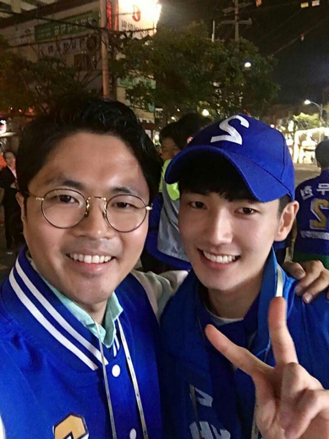 전남 여수시을에 출마한 더민주 백무현 후보의 아들 백승건씨(오른쪽). 출처=백무현 후보 페이스북