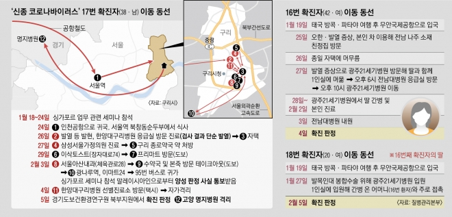 지난달 27일 삼성서울가정의원과 이달 3일 서울아산내과 등 병원을 두 차례 더 방문했지만 어느 병원에서도 신종 코로나를 의심하지 않았다. 3일이 돼서야 싱가포르 세미나에 함께 참석한 말레이시아인이 신종 코로나 양성 판정을 받았다는 소식을 접하고서 4일 한양대 구리병원 선별진료소를 방문했고 자가격리에 들어가 다음날인 5일 최종 양성 판정을 받았다.