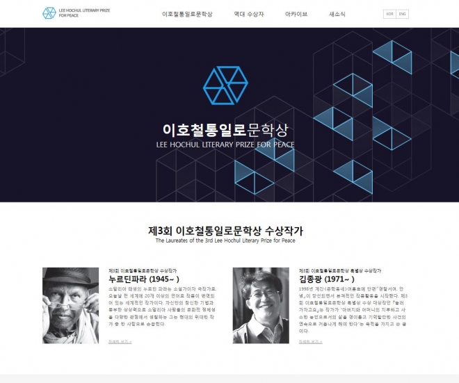 15일 정식으로 선보이는 이화철통일로문학상 홈페이지에는 2017년 상이 처음 생긴 이후 3년간 축적된 성과를 정리했다.