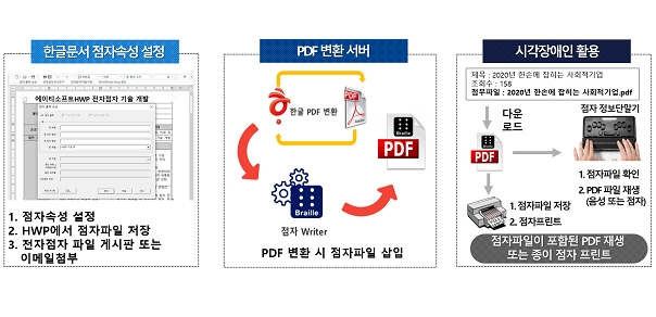 지난 7월 시각장애인의 공공기관 문서에 대한 접근성 제고를 위한 점자법 일부개정 법률안이 발의된 가운데, 한글 문서(HWP)에서 전자점자를 생성하는 솔루션이 출시돼 눈길을 끌고 있다.