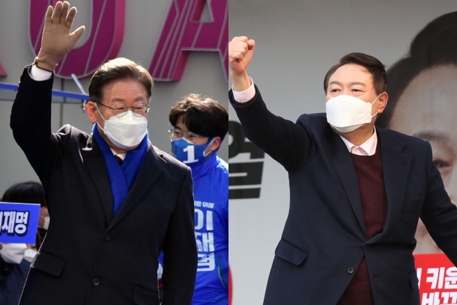 지지자에 화답하는 이재명·윤석열