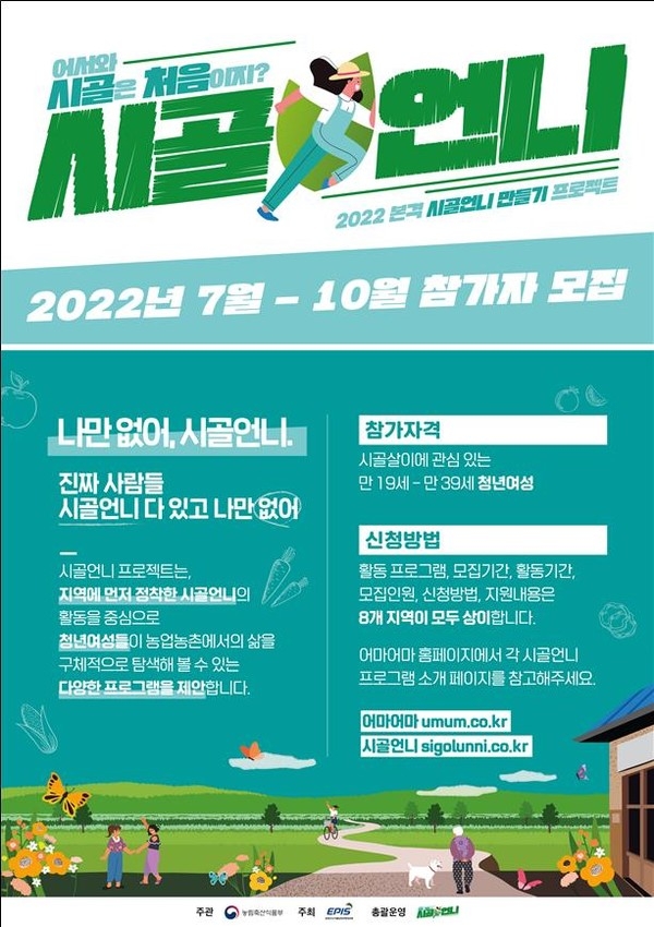 시골언니 프로젝트 홈페이지(www.sigolunni.co.kr)와 지역살이 소개 플랫폼 어마어마(www.umum.co.kr)로 신청을 받아 총 250명을 선정한다.