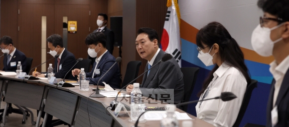 윤석열 대통령이 14일 서울 중구 서민금융통합지원센터에서 주재한 제2차 비상경제민생회의에서 발언하고 있다.