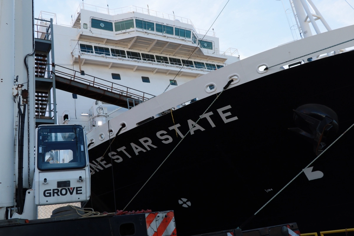 지난 22일(현지시간) 미국 펜실베이니아주 필라델피아의 한화필리조선소에서 국가안보다목적선박(NSMV)의 건조 작업이 마무리되고 있다.