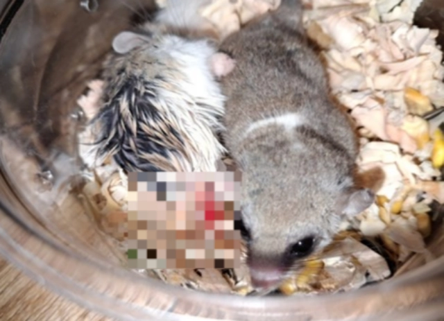 누리꾼 A씨의 강제 합사 탓에 상처 입은 소동물들. A씨는 이런 사진을 버젓이 온라인 커뮤니티와 소셜미디어(SNS) 등에 올리는 기행을 보였다. 네이버 카페 캡처
