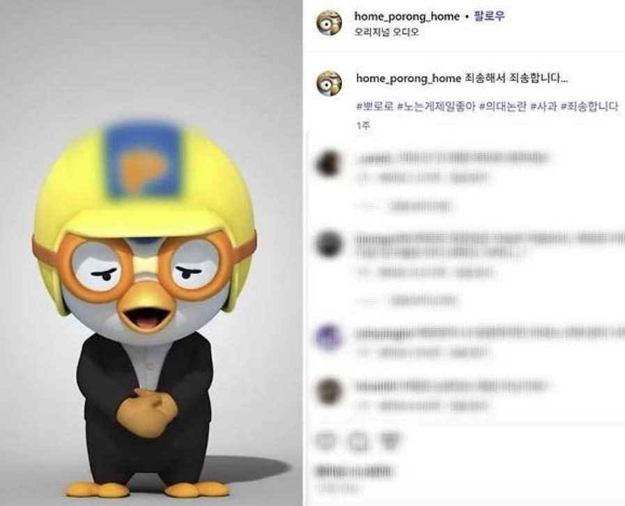 뽀로로 공식 소셜미디어(SNS) 계정 ‘뽀롱뽀롱 뽀로로’에는 최근 “죄송해서 죄송하다”는 글과 함께 뽀로로 사과 영상이 올라왔다.