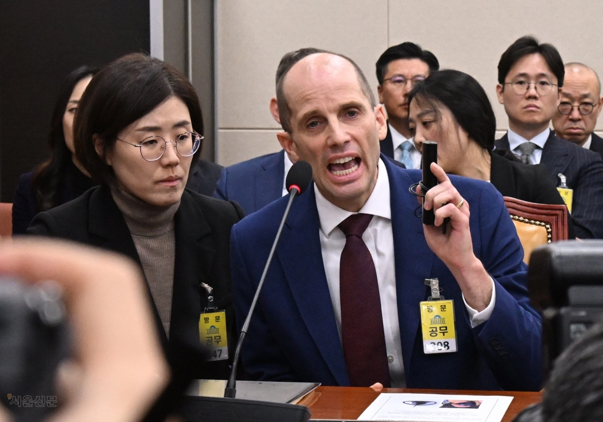 30일 국회에서 열린 쿠팡 침해사고 및 개인정보 유출, 불공정 거래, 노동환경 실태 파악과 재발 방지 대책 마련을 위한 청문회에서 해롤드 로저스 쿠팡 대표이사가 최민희 과학기술정보방송통신위원회 위원장의 동시통역기 착용 요구에 답변하고 있다. 2025.12.30안주영 전문기자