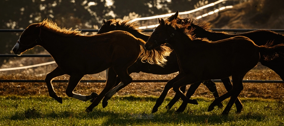 2026년 병오년(丙午年) 말띠 해를 맞아 제주 구좌읍 하도축산계공동목장에서 절따말(붉은빛을 띤 말)들이 힘차게 초원을 달리고 있다. 사진은 지난 12일 촬영했다.