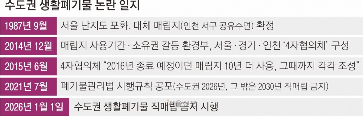 올해부터 수도권에서 가연성 생활폐기물(종량제봉투 쓰레기)을 바로 묻을 수 없고, 소각 후 남은 재만 매립할 수 있다. 서울 25개 자치구가 그동안 수도권매립지(인천 서구)에 묻었던 연간 21만t 남짓을 ‘원정 소각’으로 처리하게 된 배경이다. 그러자 서울 쓰레기를 위탁 처리하는 민간소각장이 집중된 충청권은 “수도권 쓰레기를 떠넘기는 방식이 돼서는 안 된다”며 강력 반발했다. ‘폐기물 발생지 처리 원칙’에 어긋난다는 것이다. 이처럼 6·3지방선거를 앞두고 쓰레기 문제가 우리 사회의 갈등 현안으로 부상하고 있지만, 정부는 출구를 찾지 못하고 있다. 공공소각장 마련이 지지부진한 상황에서 오는 2030년부터 직매립 금지가 전국으로 확대되는 만큼 대책 마련을 서둘러야 한다는 지적이 나온다.