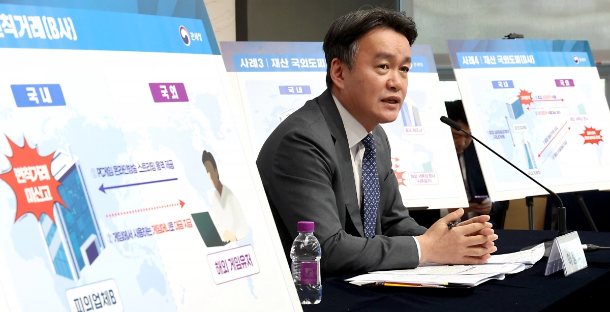 이종욱 관세청 차장이 13일 세종시 정부세종청사 중앙동에서 환율 안정을 위해 고환율을 유발하는 불법 외환거래 집중 점검 및 단속 계획을 발표하고 있다. 세종 뉴스1