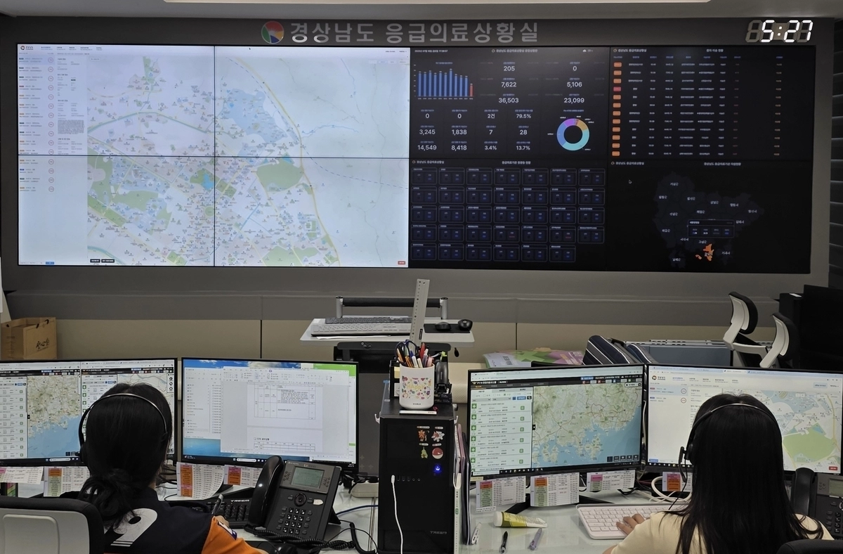 경남도는 도청과 소방, 응급의료지원단, 의료기관을 하나의 체계로 연결한 ‘응급의료상황실’을 운영 중이다. 구급 차량의 환자 이송 과정과 응급 의료 정보를 실시간으로 파악하는 ‘응급 컨트롤타워’ 역할을 한다. 상황실은 365일 24시간 운영되며, 12명이 교대근무하고 있다. 응급환자가 발생했다는 신고가 접수되면 응급실 34개소에 설치된 경광등으로 병원 의료진을 호출한다. 의료진은 ‘구급 스마트 시스템’으로 환자 정보를 확인한 뒤 수용 여부를 판단해 상황실에 알린다. 이 정보는 구급대원에게 즉각 전달돼 신속한 환자 이송을 돕는다.