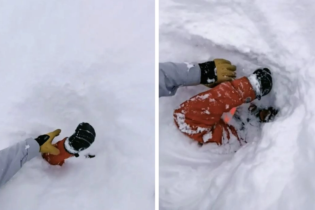 영상에는 “지금 갑니다. 괜찮을 거예요!”라고 외치며 파묻힌 스키어를 안심시키는 마테오의 목소리가 담겼다. 눈 위로 팔을 흔들고 있던 스키어를 향해 그는 깊은 눈을 헤치고 급히 나아갔다.