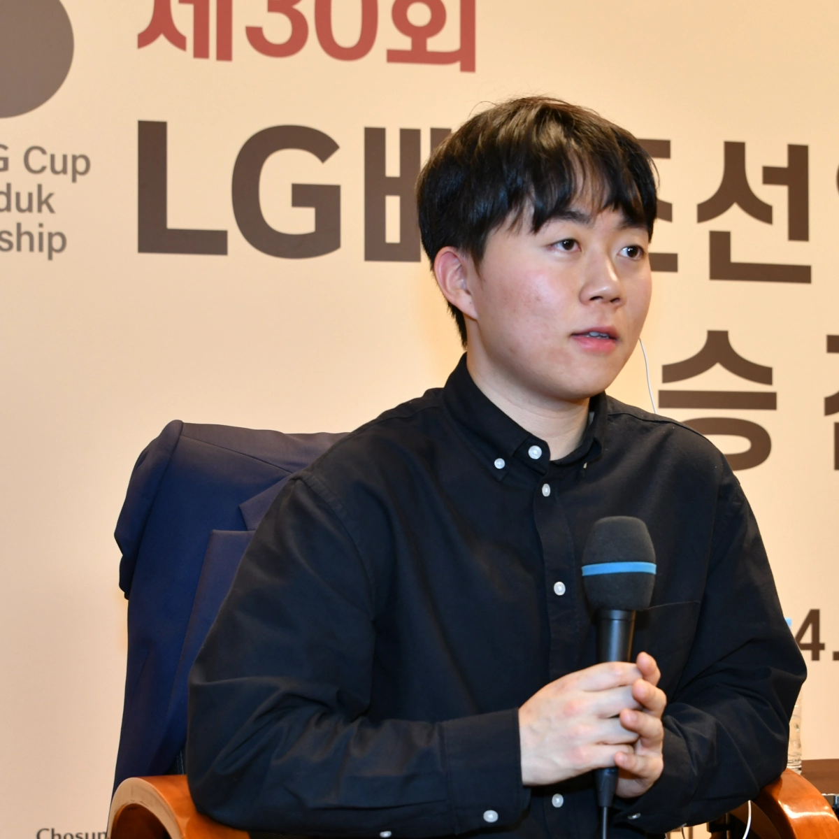 신민준 9단이 15일 서울 용산구 국립중앙박물관에서 열린 제30회 LG배 조선일보 기왕전 결승 3번기 최종국에서 승리한 후 소감을 말하고 있다. 2026.1.15 한국기원 제공