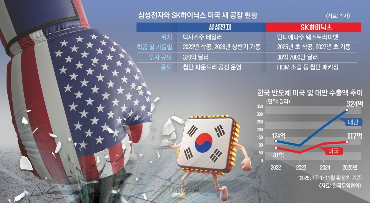 트럼프 행정부가 반도체 관세에 포문을 열며 삼성전자와 SK하이닉스 등 우리 기업도 긴장하고 있다. 엔비디아의 AI 반도체에는 이들 기업이 생산한 고대역폭메모리(HBM)가 탑재되고 있다. 업계에선 이번 조치가 당장 국내 기업에 미칠 직접적인 영향은 제한적일 것으로 보고 있다. 지난해 11월 한미 관세 세부 협상 결과에 따라 우리나라 반도체가 대만, 일본, 유럽연합(EU) 등에 비해 불리하지 않은 최혜국 대우를 약속받은 점도 긍정적 요인으로 꼽힌다.