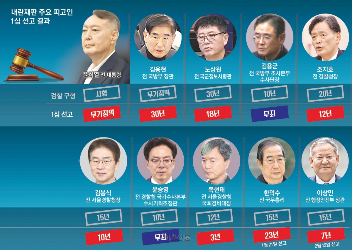법원 “김·노, 계엄 주도적으로 준비”‘체포 지시’ 조지호 12년·김봉식 10년