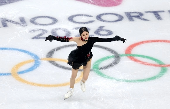 이해인이 19일(현지시간) 이탈리아 밀라노 아이스스케이팅 아레나에서 열린 2026 밀라노-코르티나담페초 동계 올림픽 여자 싱글 프리 스케이팅에 출전해 연기를 마친 뒤 기뻐하고 있다.