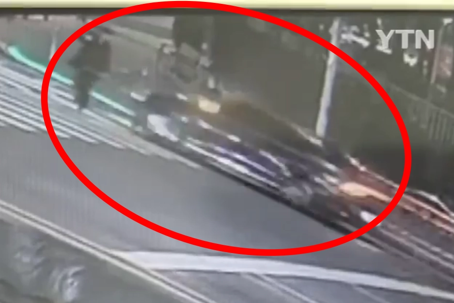 음주운전 혐의로 입건된 김인호 산림청장이 20일 신호를 위반한 채 운전하다 횡단보도를 건너던 시민을 칠 뻔한 모습. 깜짝 놀란 시민은 다급히 몸을 피해 다행히 사고를 당하지 않았다. YTN 보도화면 캡처