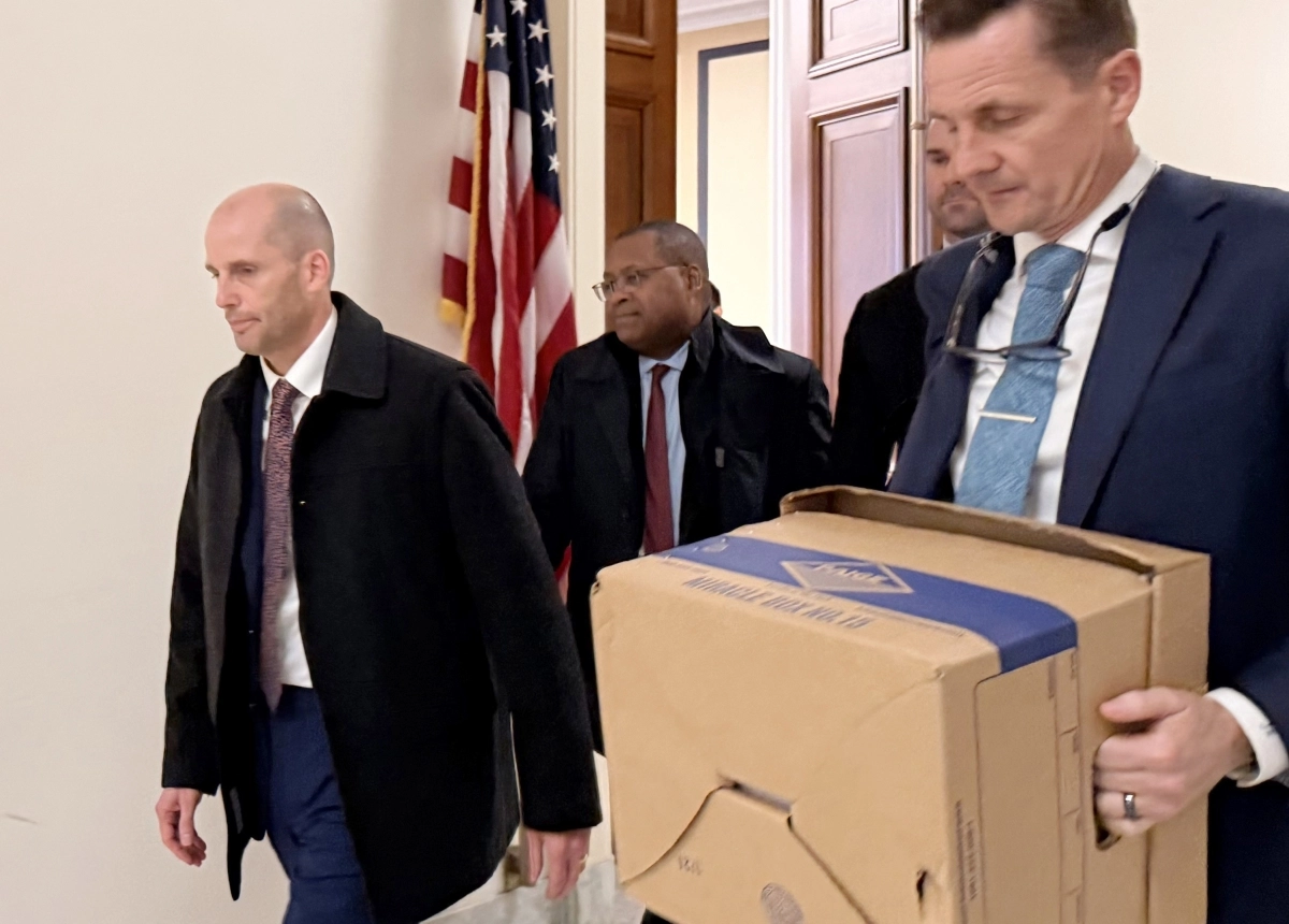 해롤드 로저스(왼쪽) 쿠팡 한국법인 임시 대표가 23일(현지시간) 미국 워싱턴DC 레이번 하원 빌딩 내 하원 법제사법위원회 회의장에서 7시간가량 비공개 증언을 한 뒤 나오고 있다.