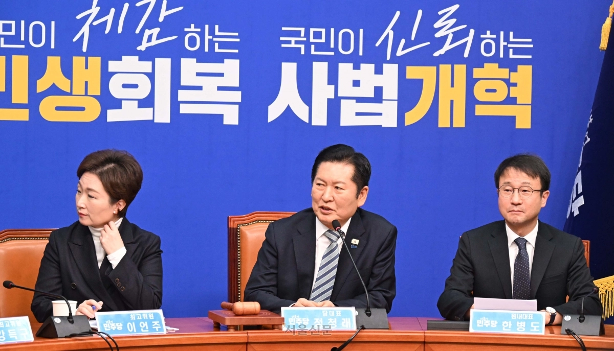 정청래 더불어민주당 대표가 25일 국회에서 열린 최고위원회의에서 발언 하고 있다. 2026.2.25 안주영 전문기자
